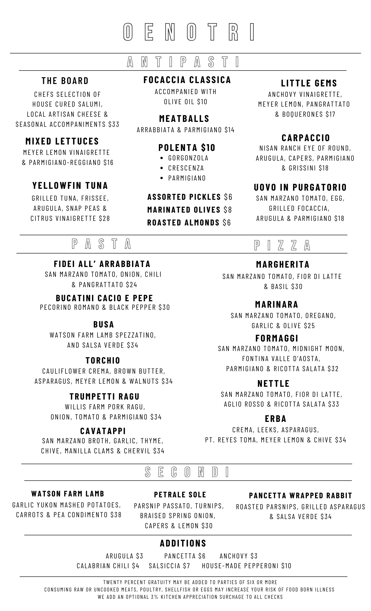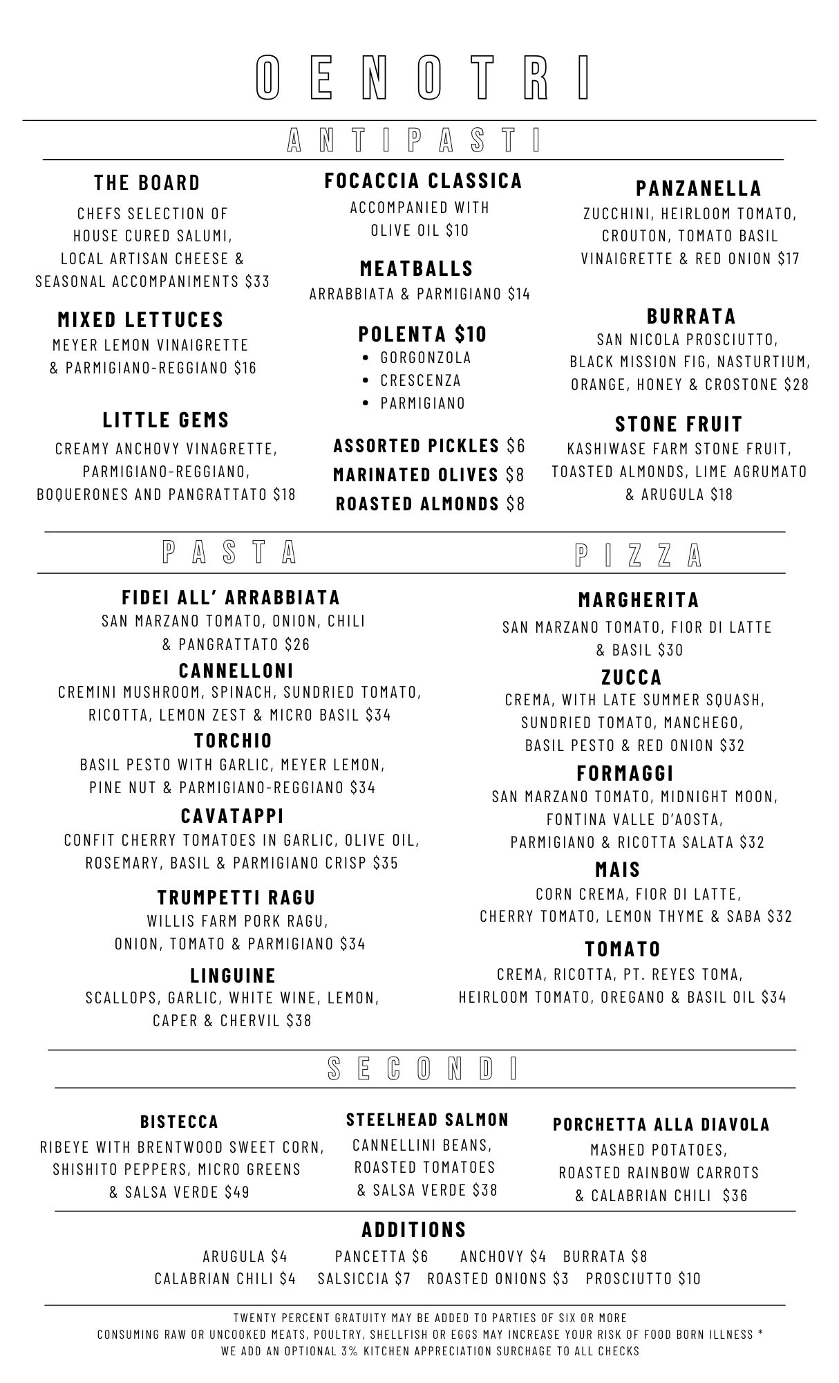 OENOTRI WILL ACCEPT UP TO FOUR (4) CREDIT CARDS PER TABLE COMES FROM OUR LOCAL GARDEN